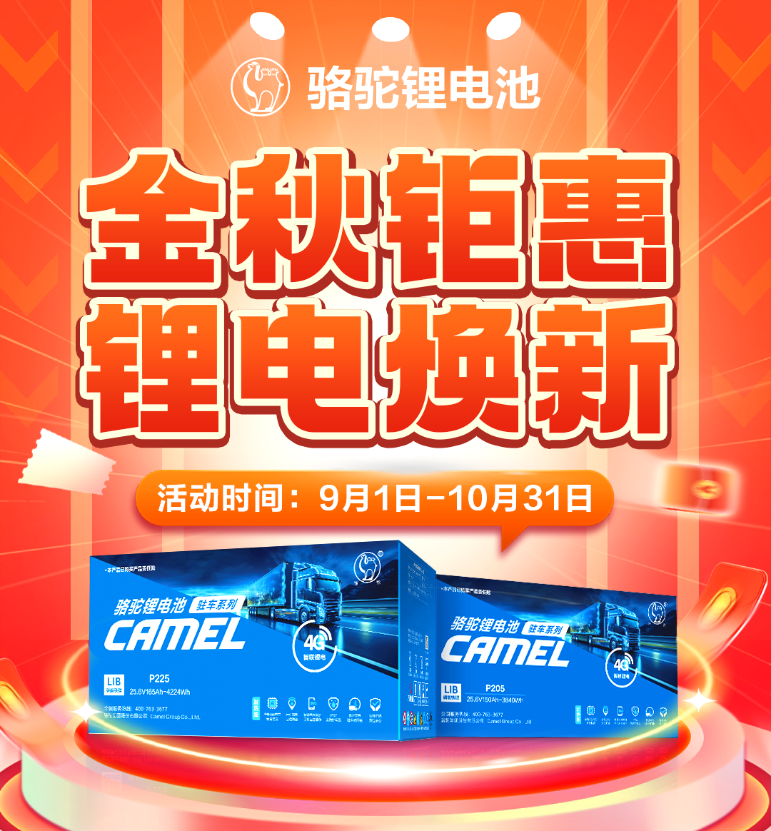 本次活动重磅推出“锂电焕新”福利!即日起,卡友们可用恣意品牌卡货用铅酸电池换装骆驼锂电P205与P225,以旧换新价低至2999元!